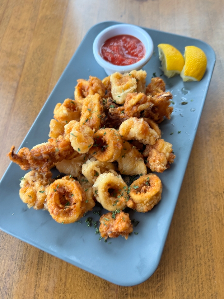 Crispy Calamari served with fresh lemon and cocktail sauce. **GLUTEN FREE** **Not Recommended for Takeout/Delivery**
