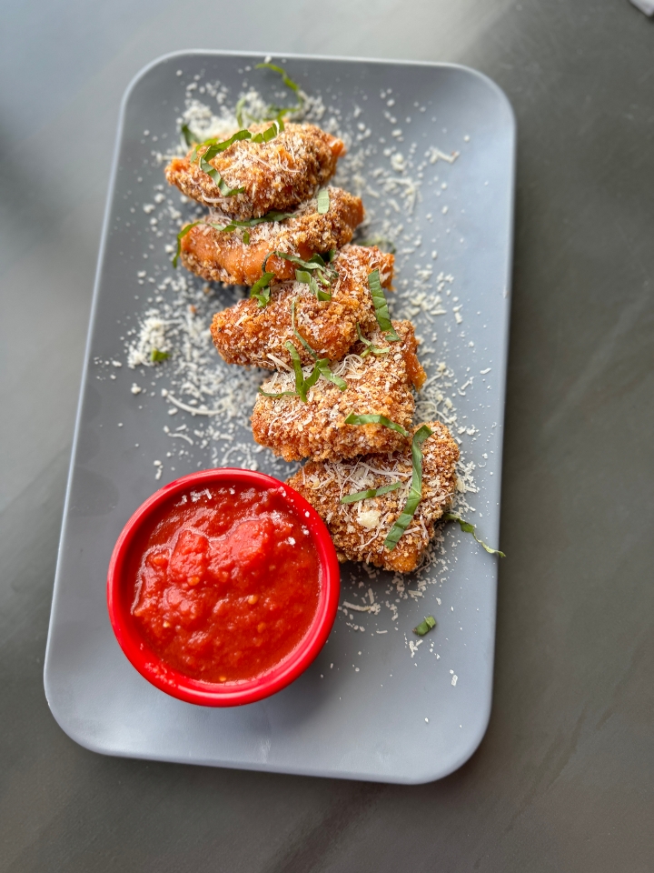 Crispy Provolone, Red Sauce, Grana Padano, Fresh Basil **Gluten Free*** **Not recommended for Takeout/Delivery**