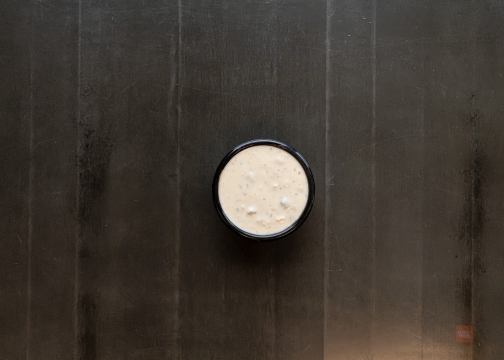 White Garlic Sauce, Double Roasted Cremini and Button Mushrooms, Grana Padano, Scallions