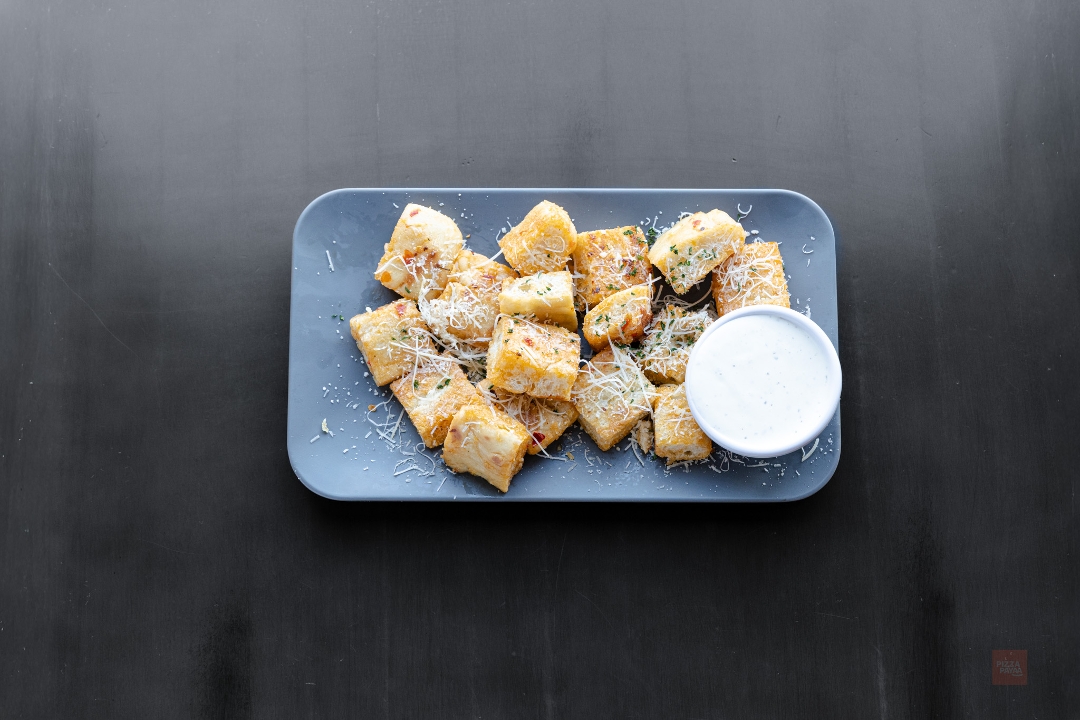 Three Cheeses, Bacon, Fresh Garlic Olive Oil. Served with your choice of dipping sauce.